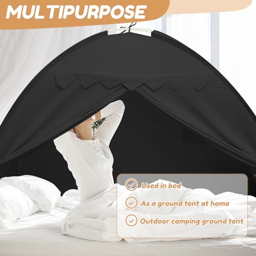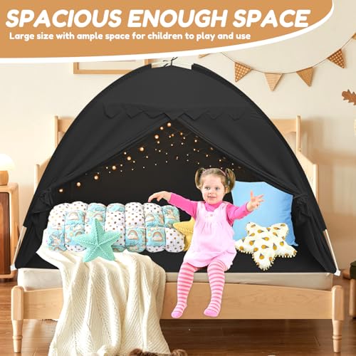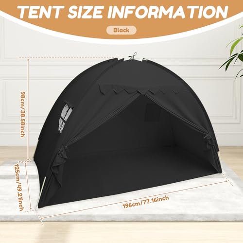 Versatile Bed Canopy Tent Large Domed Blackout Sleeping Tent Large Privacy Space Sleeping Drafty Room Tents Indoor Breathable Cottage Floor Bed Tents 196x98x125cm for Child Playing (Black)