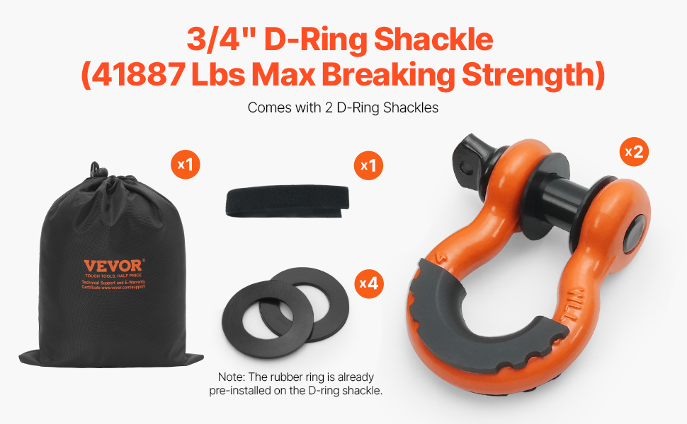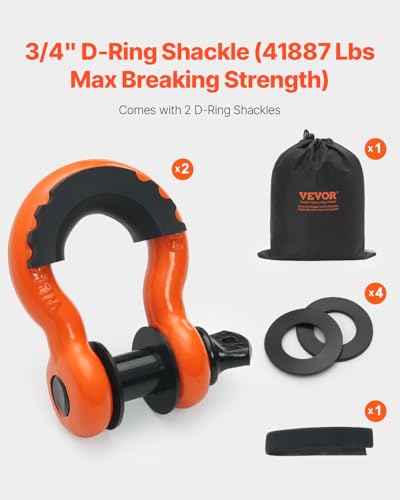 D-Ring Shackles: Get peace of mind with our tow rope's ultra-secure D-ring shackles. They're zinc-plated for durability and come with silicone bumper guards. Lab-tested and certified to handle up to 41,887 lbs – now that's some serious strength you can rely on!