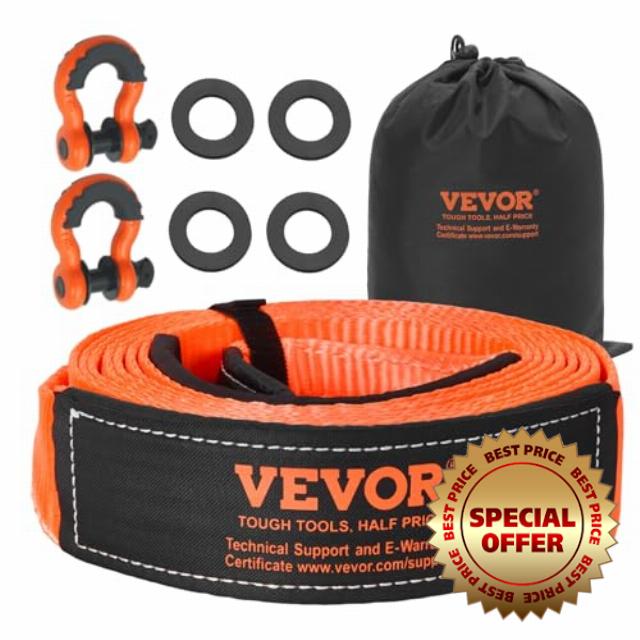 VEVOR Heavy Duty Tow Strap Recovery Kit 3 in x 20 ft