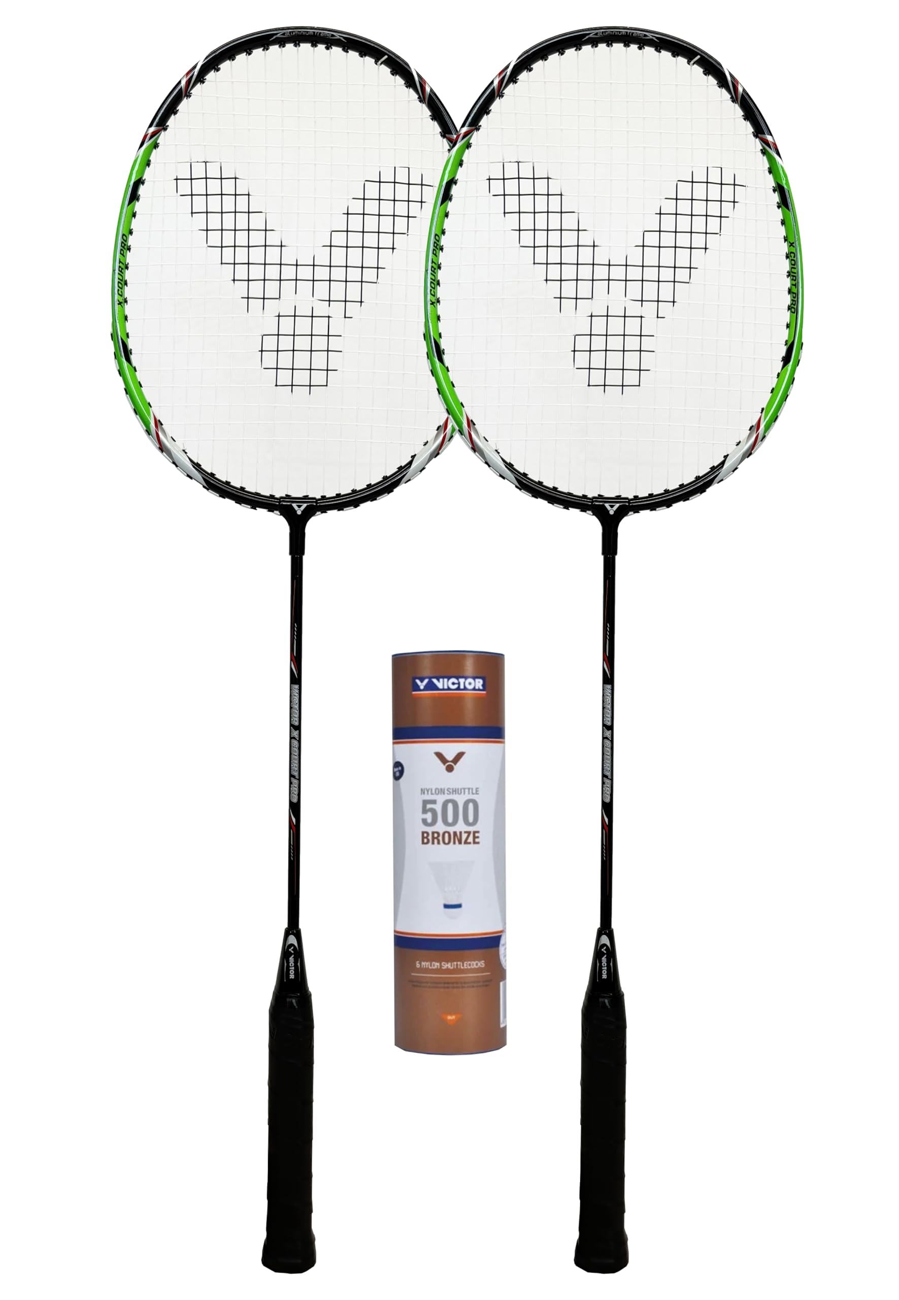 VICTOR X Court Pro Twin Badminton Racket Set inc Shuttles