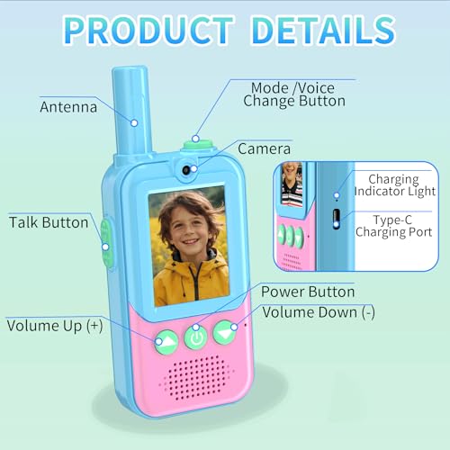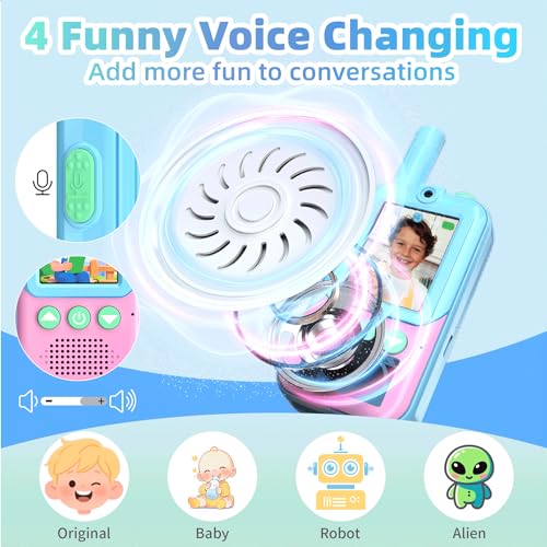Video Walkie Talkies for Kids 2 Pack,Rechargeable Kids Walkie Talkies with 4 Voice Effects &HD Camera,Long Range Two Way Radios Christmas Birthday kids toys for Boys Girls Age 3-12