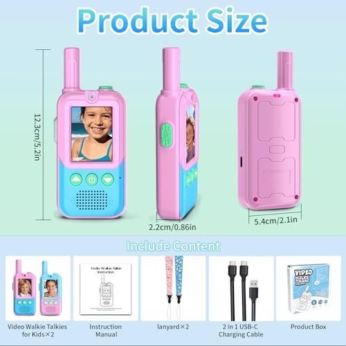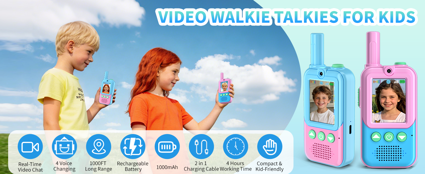 - 【Upgraded Video Walkie Talkies for Kids】Say goodbye to traditional walkie talkies that can only transmit sound. Our product innovation features video calling function, allowing children to see each other intuitively and achieve seamless real-time interaction, adding fun to outdoor exploration, camping, or playing with friends.