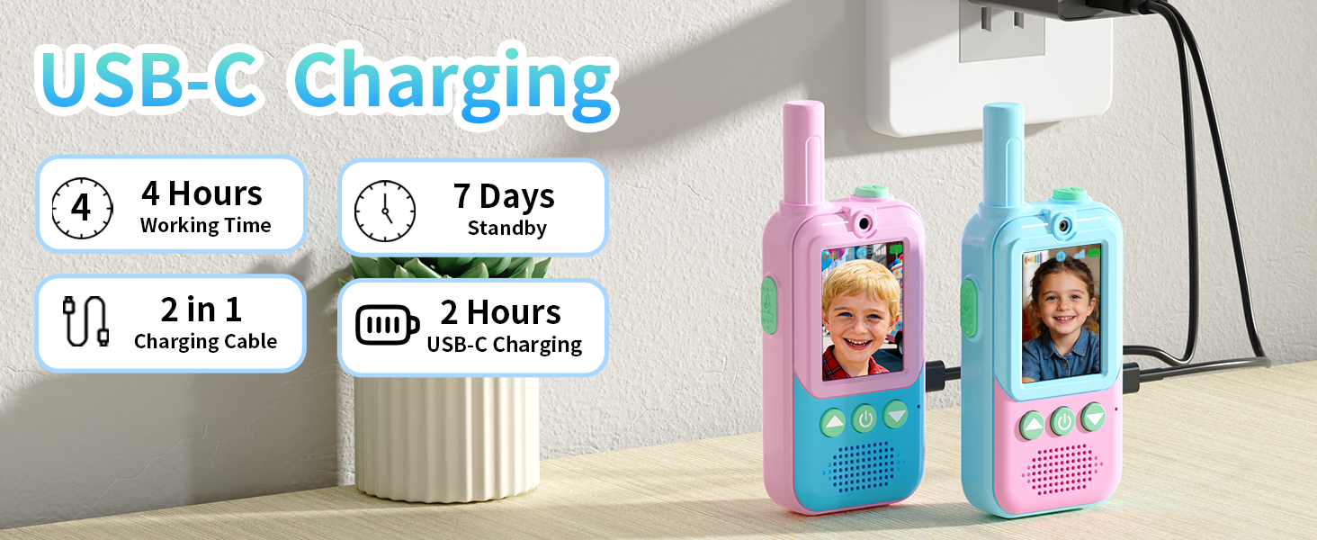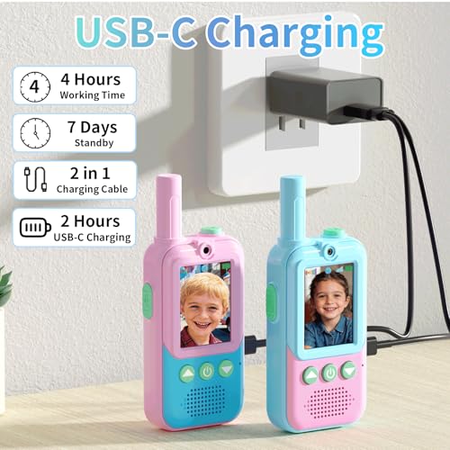 - 【Rechargeable and easy for children to use】This rechargeable walkie talkies for kids comes with a charging function, completely eliminating the hassle of frequent battery changes! Type-C 2-in-1 charging design, fast charging, long-term use, tailored for boys and girls, kids toys, easy to operate, compact and lightweight body, more ergonomic, perfect for children's hands, making outdoor games more fun and interactive.