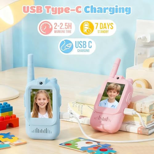 Video Walkie Talkies for Kids with Screen, 2 Pack Rechargeable Long Range Walkie Talkie with Voice Effects, Gifts Toys for Kids Ages 3-12 for Indoor/Outdoor Hiking,Christmas Birthday Gifts