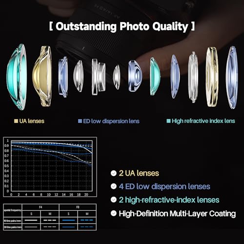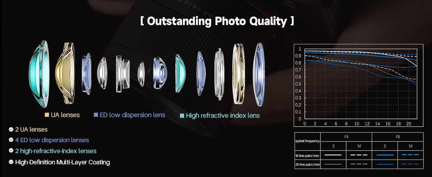 - Outstanding Photo Quality: 2 UA lenses, 4 ED low dispersion lenses, and 2 high-refractive-index lenses, delivers reliable performance and near-zero distortion.