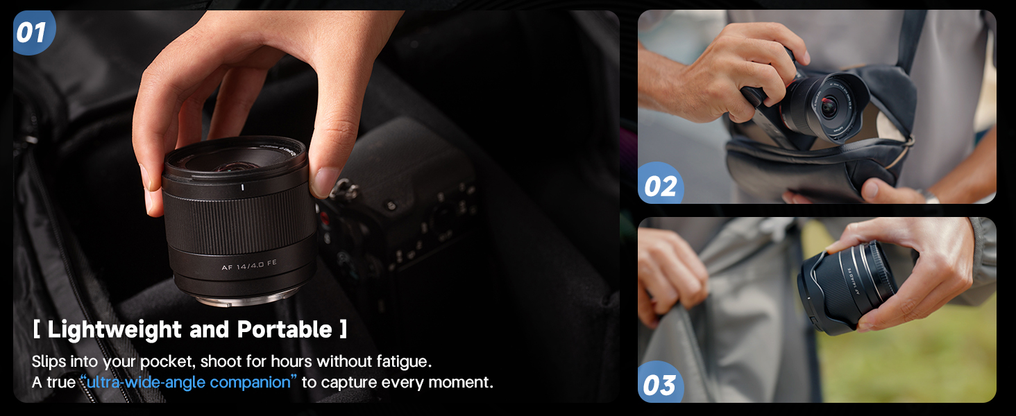Slips into your pocket, shoot for hours without fatigue. A true “ultra-wide-angle companion” to capture every moment.