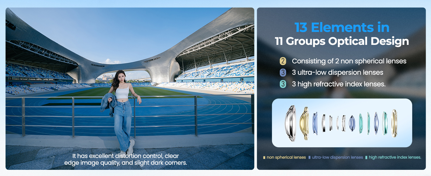 - Outstanding Photo Quality: 2 UA lenses, 3 ED low dispersion lenses, and 3 high-refractive-index lenses, delivers reliable performance and near-zero distortion.