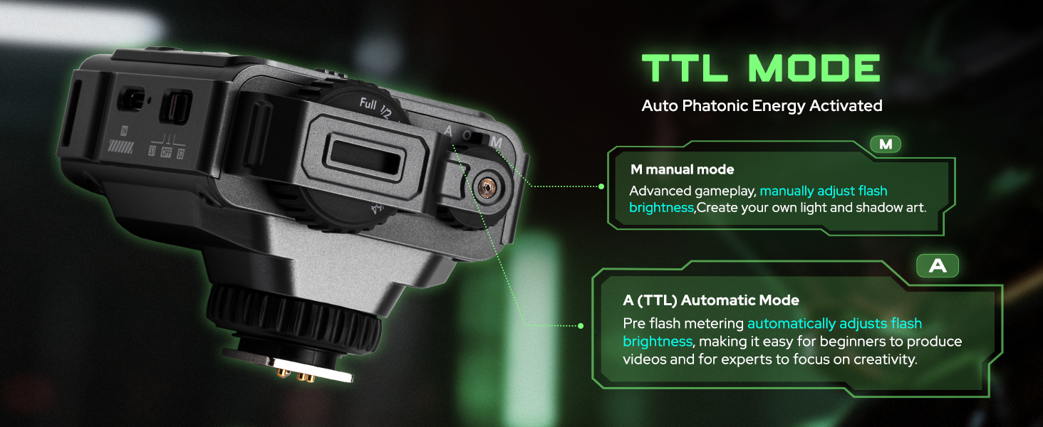 A(TTL) Automatic Mode : Pre flash metering automatically adjusts flash brightness, making it easy for beginners to produce videos and for experts to focus on creativity.