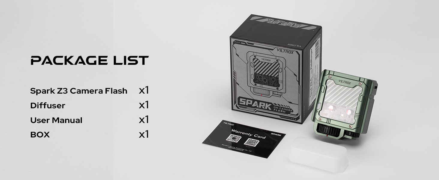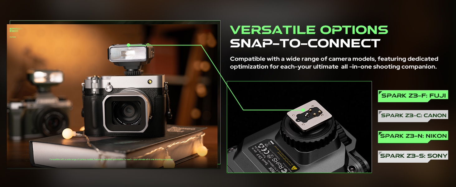 - Sleek Cyber Mech Style: With a unique Cyber Mech look in Gunmetal Gray and Tundra Green, the Spark Z3 flash combines stylish design with powerful performance.
