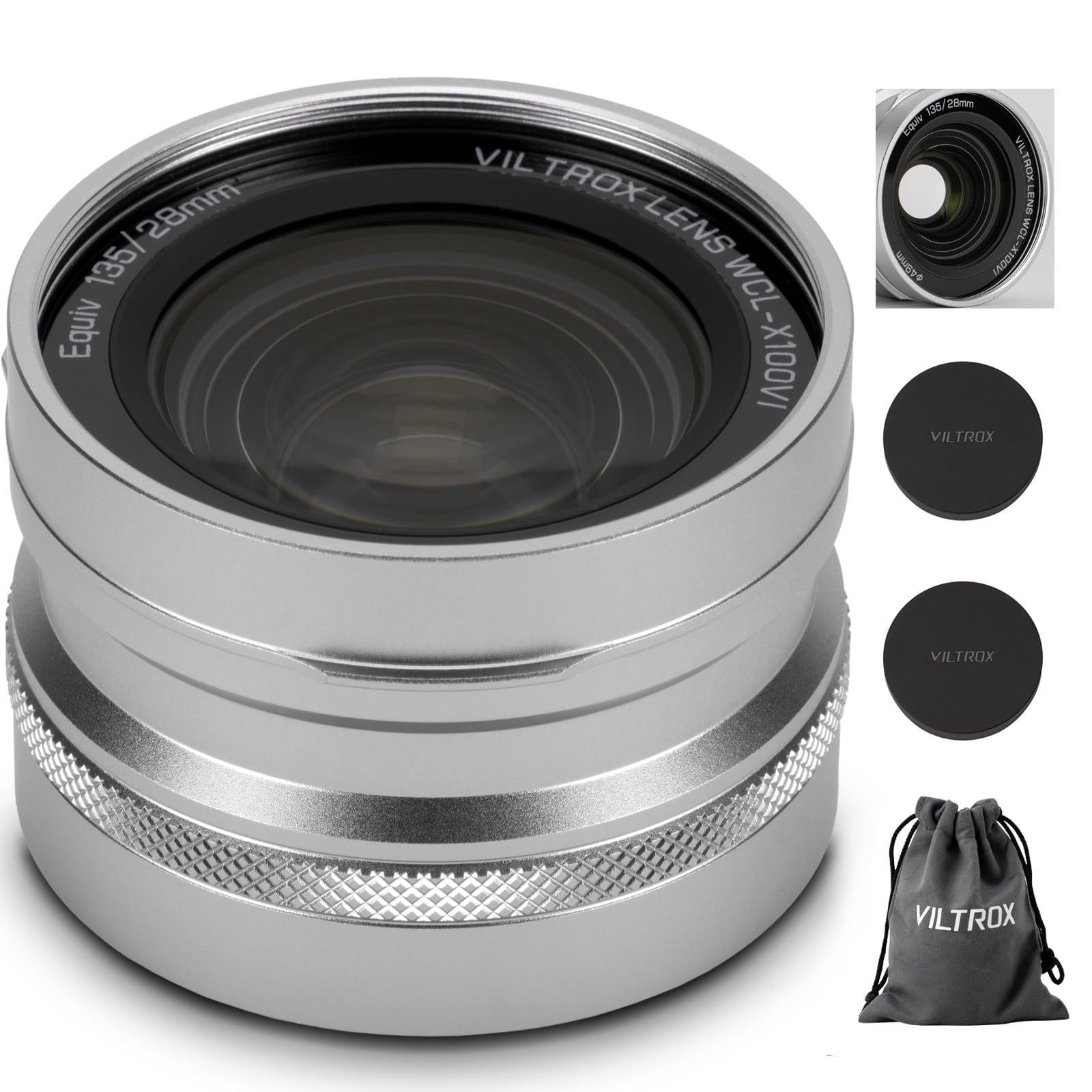VILTROX WCL-X100VI Wide Conversion Lens for Fujifilm X100 Series Camera, 0.8X Wide Angle Auto Recognition Lens for Fuji Fujifilm X100VI, X100V, X100F, X100S, X100 Cameras-Silve