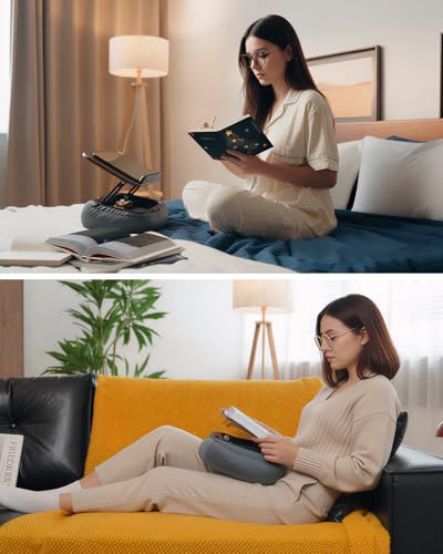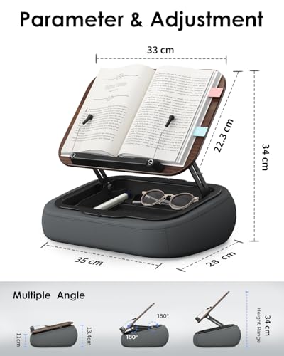 【Fully Adjustable Multi-Angle Book Stand】The adjustable support arm offers up to 180° angle flexibility, allowing you to set a comfortable viewing height of approximately 13.4–34 cm. Use it as a book stand, Kindle stand, Kindle holder, tablet stand, or lap desk pillow—designed to help reduce neck and shoulder strain during extended reading or study sessions. Please note: When adjusting the height of the book stand panel, ensure the overall balance of the product to maintain safe use.