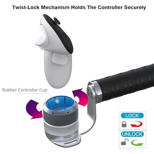 - SAFE: Locking mechanism holds the controller securely. Tie the controller lanyard to the metal mount while playing for double protection. The safety wrist strap prevents the bat from accidentally flying off your hands. Both these together safeguard the quest controllers from accidental damage.