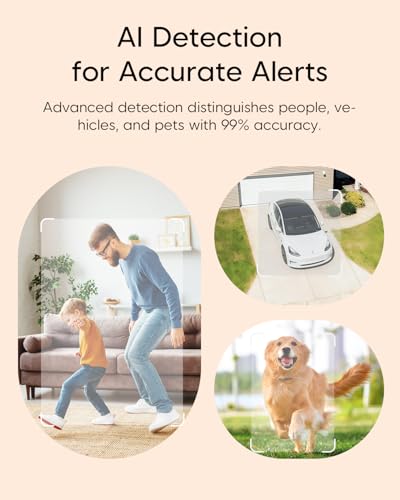 - 【Smart AI Detection for Accurate Alerts】— Advanced AI algorithm precisely distinguishes people, pets, and vehicles. Receive precise notifications and reduce false alarms by up to 95%—so you’re only notified what matters.