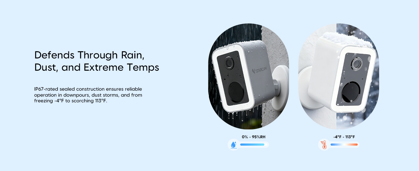- 【True All-Weather Durability】— Built with a robust IP67 rating, this camera is engineered to withstand harsh outdoor elements like heavy rain, blazing sun, and dust. It delivers reliable performance year-round, ensuring non-stop protection in all season.