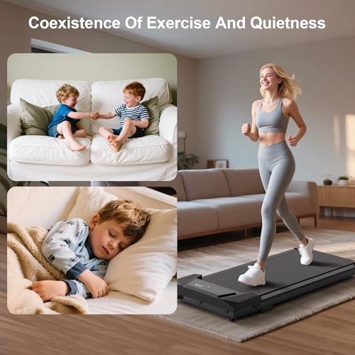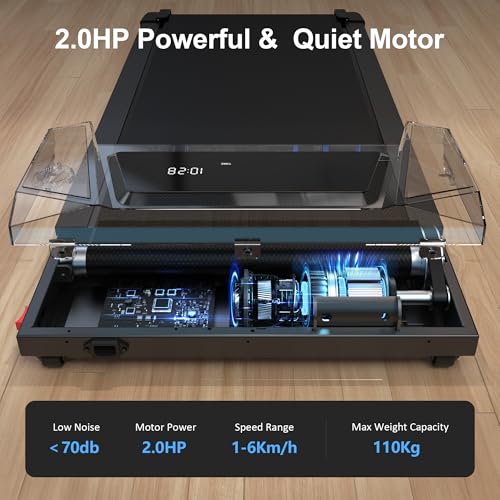 [Low Noise Design]Walking Pad noise level is 70dB, and you can walk or jog without disturbing others. Treadmill suitable for use under a table or in a quiet home environment. The 480W, 220-240V power system reduces motion interruptions, making it an ideal choice to relaxation.
