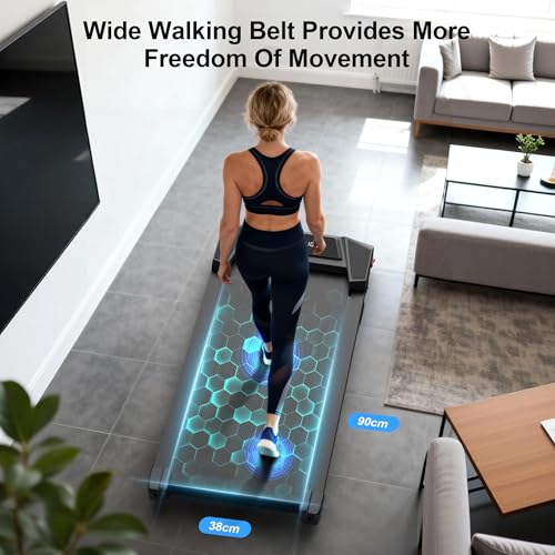 [Remote Controlled Speed]Remote control allows for easy speed adjustment and hands-free operation during calls or entertainment. The spacious 38*90CM running belt area and treadmill ensure comfortable daily workouts, letting you enjoy seamless exercise.