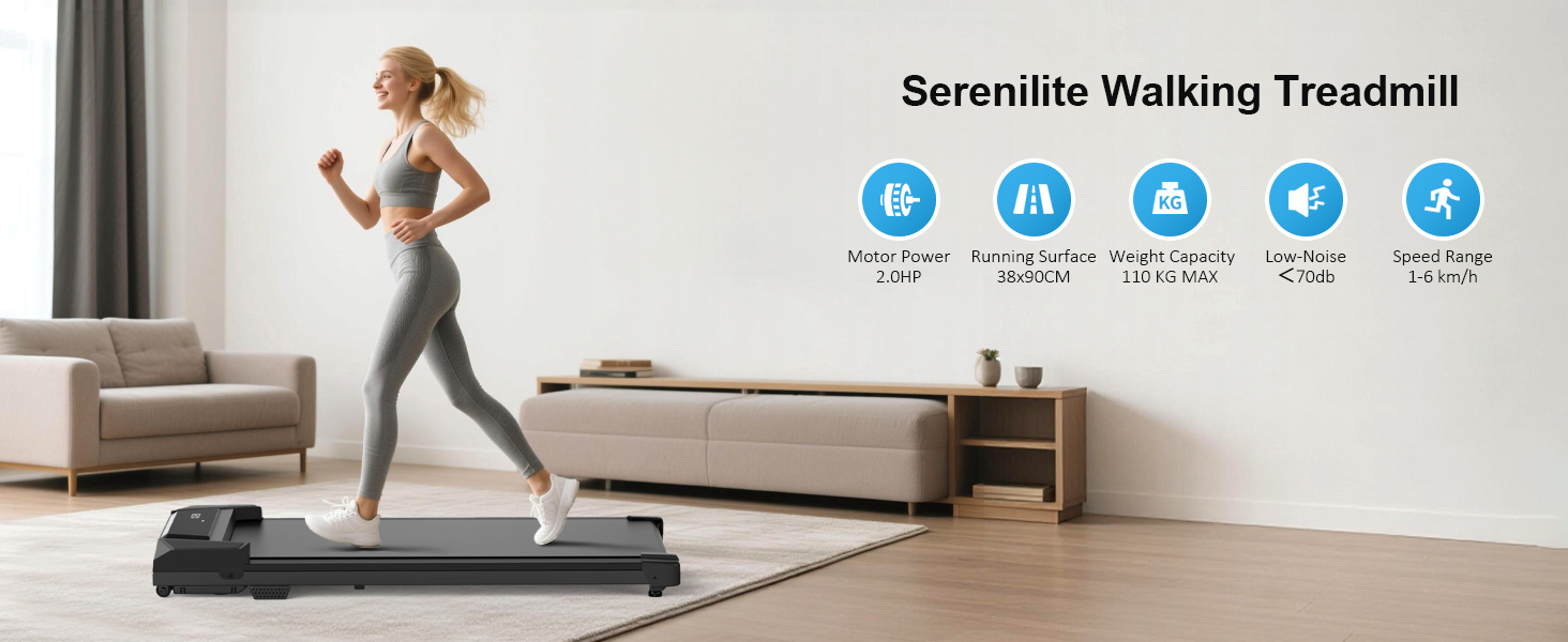 Walking Pad Treadmill for Home -Under Desk Walking and Running with Remote Control Portable Electric Machine Adjustable for Home Office Slim Compact with 6Km/h Modes Max up 110KG Serenilite