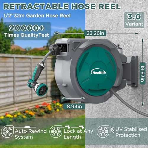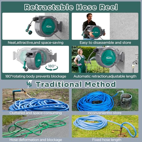 Easy to Fit & Use with Minimal Effort — The wall bracket swivels 180° for flexible reach, supports up to 45lbs, and slides easily for installation—so you can water every corner of the garden without strain.