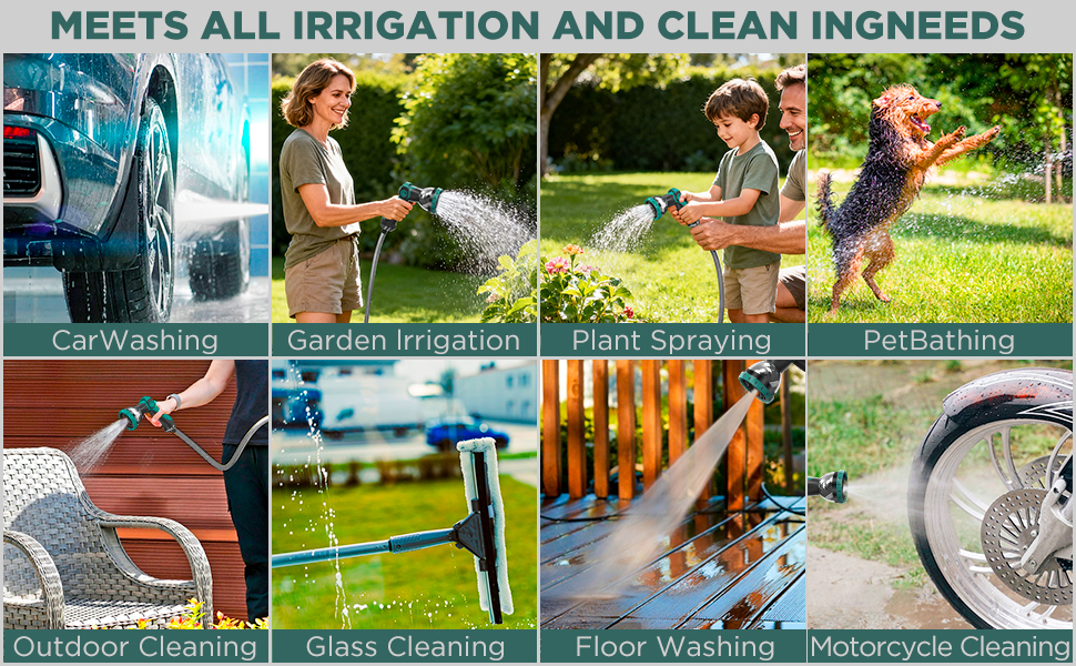 Smooth Adjustable Spray for Every Task — The included nozzle offers 10 different spray modes, making it easy to switch between gentle watering for plants and powerful jet cleaning for patios or cars.