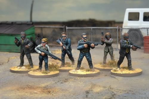 COPY THAT! Government, corporate, and underworld figures all require heavy security and you get what you pay for. These agents can represent typical hired guns or the creme de la creme of security services. This set will allow you build up to 12 men in suits, 4 women in suits, and 4 each of male and female bodies in tactical vests. Weapons include shotguns, pistols, MP-5s, P-90s, HKs, and M-class rifles. There are also arms for checking ear-pieces and holding a briefcase. Most parts will be compatible with the other sets in this range for even more weapon and head variety (suits and cowboy hats anyone?)