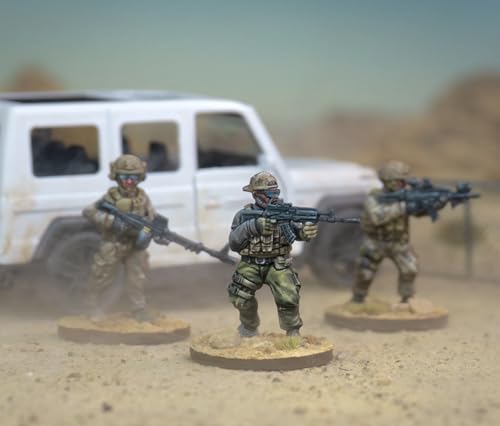 - This hard plastic box set includes enough parts to build 20 28mm figures. There are five unique bodies and a mix of modern weaponry including knives, pistols, AR and M-model rifles, AK model rifles, G-model rifles, sniper rifles, light machine-guns/squad automatic rifles, and more! To top it off there are 27 unique heads with a total of 108 heads in the box!