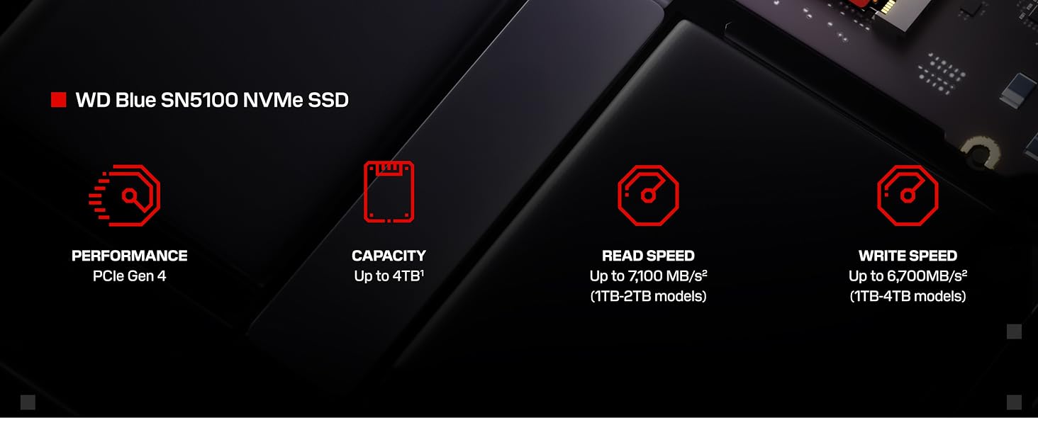WD Blue SN5100 NVMe SSD 4TB (Up to 6,900 MB/s read speeds
