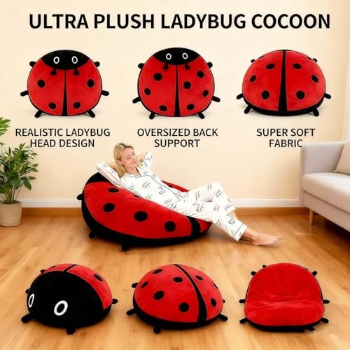 Wearable Ladybug Pillow, Ladybug Wearable Pillow, As A Backrest, Sleeping Pillows, Plush Toy, Lounging Cushion, Or Performance/Cosplay Costume For Children And Adults Release Stress (40in)
