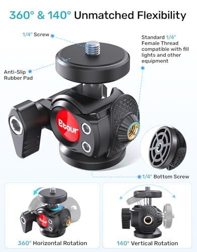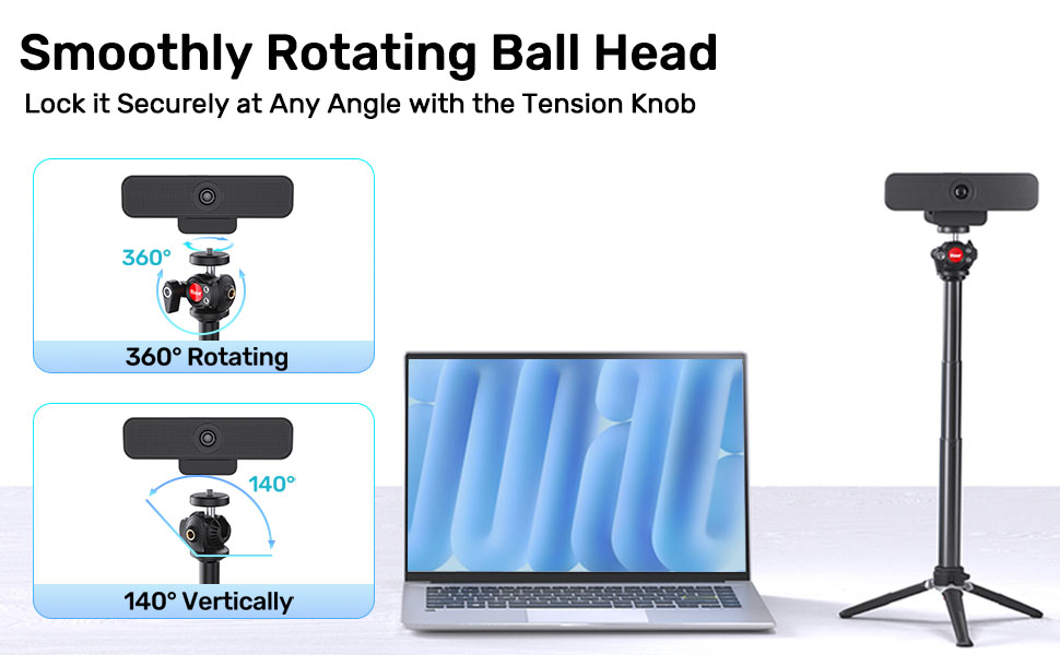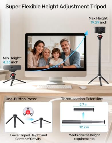 - 【Precision Height & Angle Adjustment】Achieve perfect framing with effortless flexibility. The webcam tripod stand offers height adjustment from 4.33 inches (min) to 19.29 inches (max), while the 360° ball head enables precise vertical or horizontal positioning. Whether for video conferences, live streaming, online teaching, or content creation, this flexibility helps you maintain eye-level perspective or capture dynamic overhead shots—all without compromising stability.