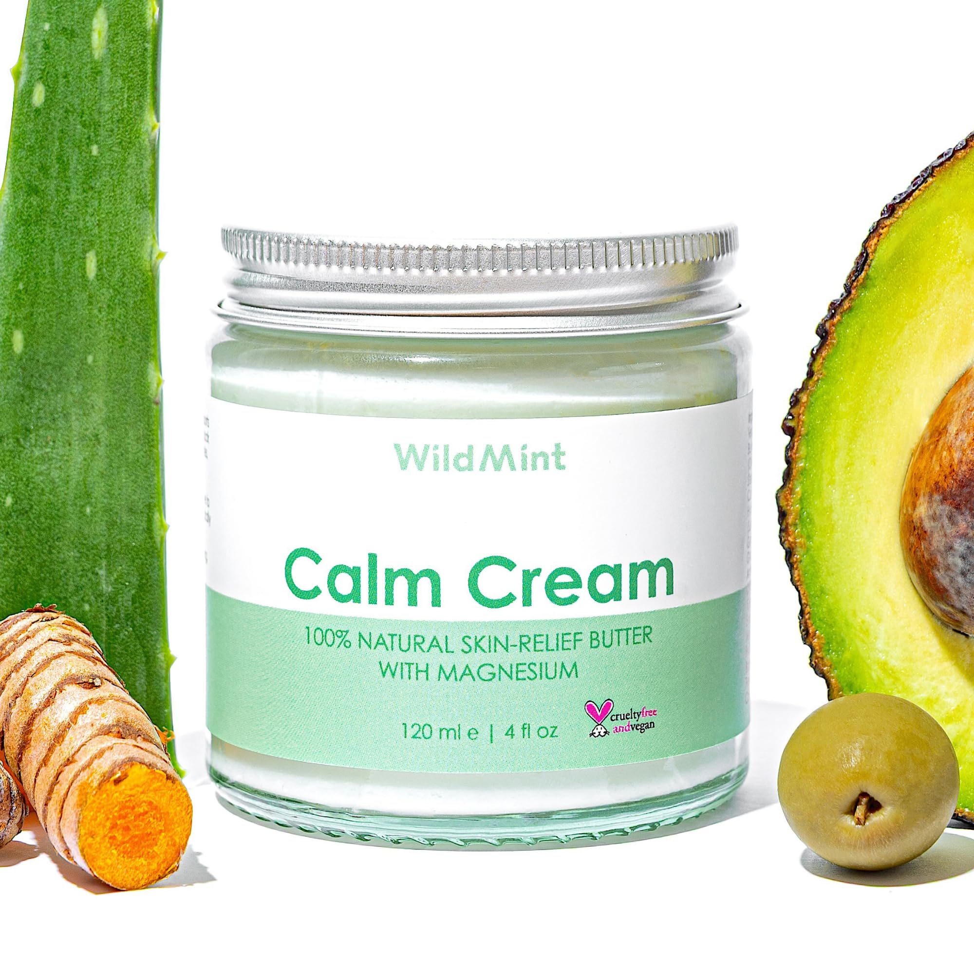 WildMint Calm Cream 100% Natural Magnesium Cream for Baby, Sensitive Skin Prone to Eczema, Irritation, Sore, Itchy & Dry Skin | Skin Relief Hydrating Moisturiser Dermatologically Tested, Vegan 120ml