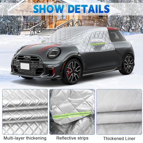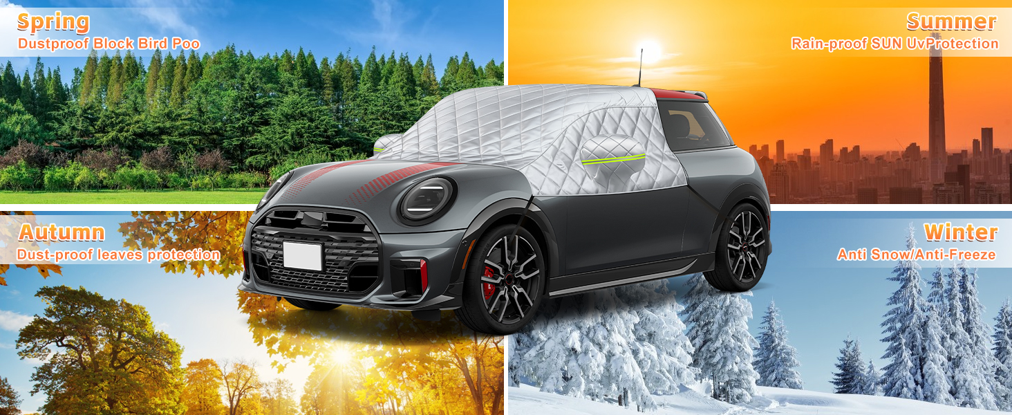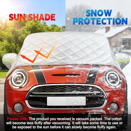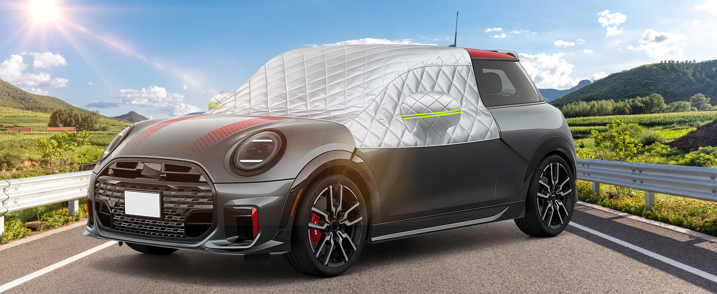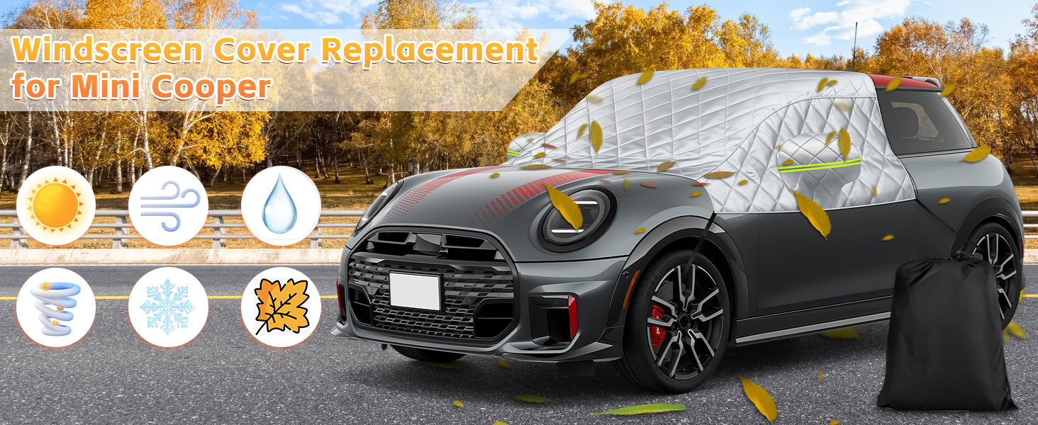 - Perfect Compatibility: This windscreen cover is designed specifically for Mini Cooper. To ensure a perfect fit, please check your car's exact model and size before purchasing. Top Tip from Us: because the product uses thick, breathable cotton filling, we recommend avoiding use during periods of continuous heavy rainfall, as the natural fibers are absorbent