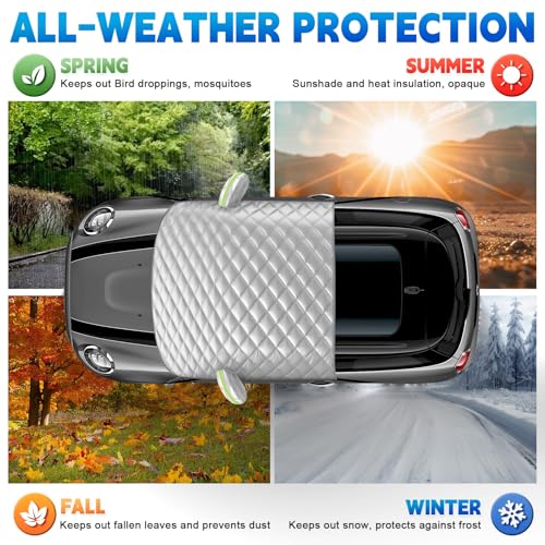Windscreen Cover Compatible with Mini Cooper, 6-Layer Thickened Winter Frost & Snow Shield, All-Weather Sun Protection Wrap