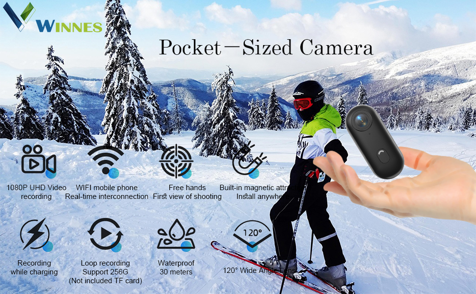 Winnes Mini Thumb Action Camera with 64GB Memory Card