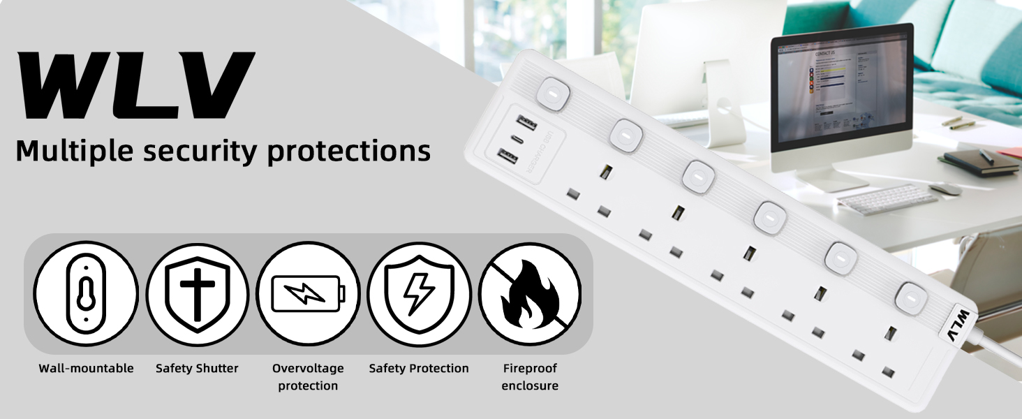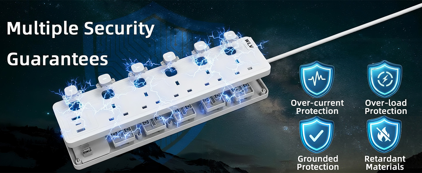 - 【13A Fuse · Safety Door】This extension lead have 13A fuse, and every charge port have safety door to protect your family safety.