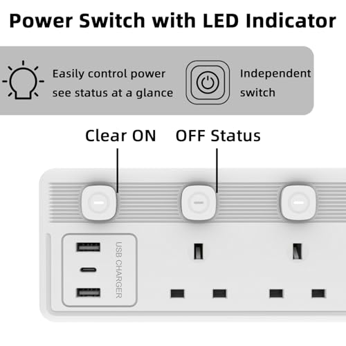 - 【Individually Switch Extension lead】5 switches could be more flexibly to use this extension lead, for example in the kitchen, when you finish used air fryer, you just need turn off the switch, no need to plug and unplug every time you use it. This design not only conveniently for you, also could save your power.