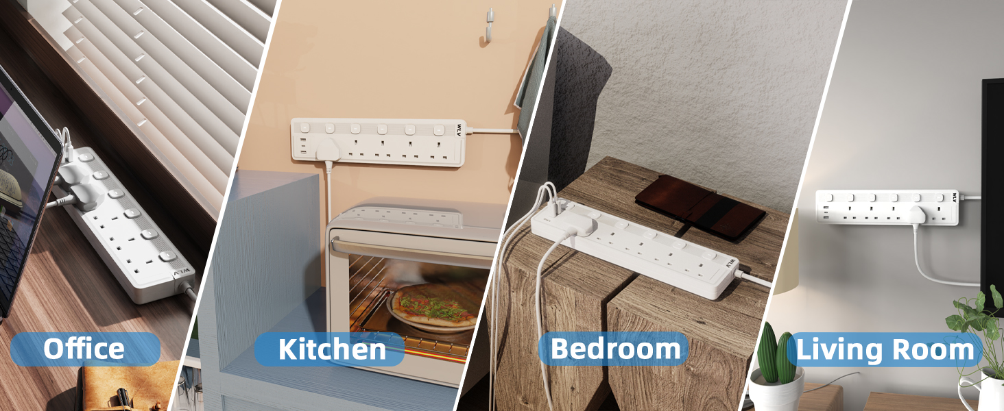 You could use this extension lead with usb slots at office, kitchen, bedroom, living room, Recreation Vehicle etc, every where when you want to charge.