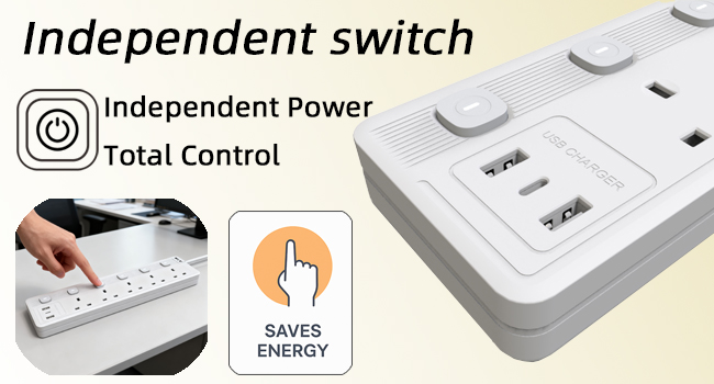 This most highlight of this extension lead is individually switch, 5 switches not noly could save your power, also convenience your daily life. When you outside, you didn't use coffee machine but the refrigerator need to use, just turn off which control coffee machine switch.
