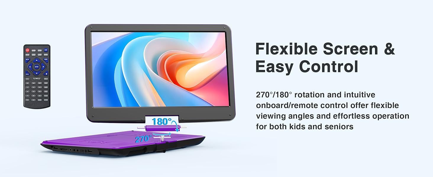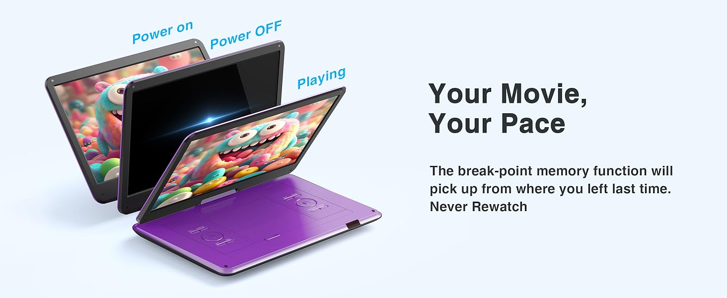 ️【Breakpoint Recovery Function】Supports instant saving of DVD playback progress. When you need to leave halfway or want to take a break, you don’t have to worry about forgetting the viewing progress. While avoiding the physical and mental fatigue caused by long-term viewing, it can ensure you a smooth viewing experience.