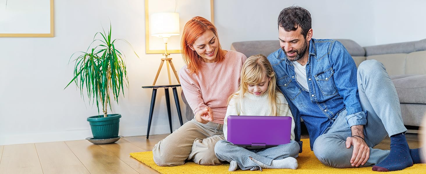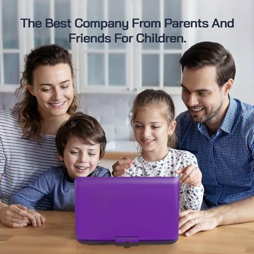 WOLFANG 17.5″ Portable DVD Player with 15.6″ Large HD Display, 6 Hours Rechargeable Battery, No Region Restrict, Dual Stereo Speakers, Support USB/SD Card/Sync TV/Projector,Purple