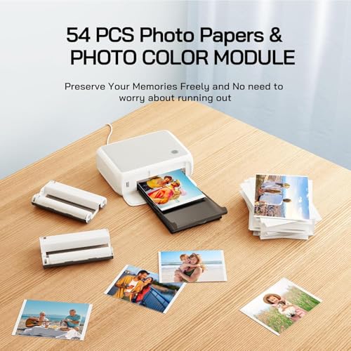 【What you can get?】Photo printer x1, photo paper 54 sheets, paper box x1, Photo Color Module x1, AC charger x1, Micro USB cable x1, user manual x1.High-quality after-sales service: if you encounter any problems during the use, please feel free to contact us, 24 hours to reply, 48 hours to solve. We will do our best to make you satisfied!