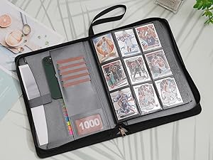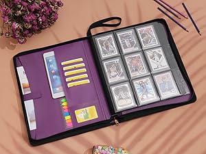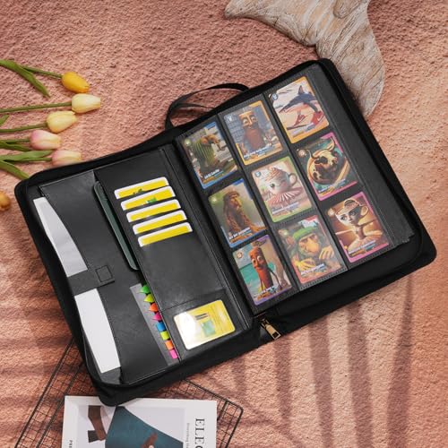 - VERSATILE LARGE INTERIOR POCKET – Designed with a generous interior pocket and card slots, this binder simplifies card organization and access. It can securely hold your tablets, Pen, Phone, key cards, notes, and slots for lists and documents, making it the ultimate all-in-one collector's portfolio.