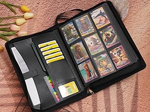- PREMIUM MATERIALS FOR ULTIMATE PROTECTION – Crafted with high-quality water-resistant PU leather and a robust zipper, this binder offers a polished and long-lasting solution. The archival-safe, acid-free, and PVC-free pages ensure your valuable card collection remains pristine.