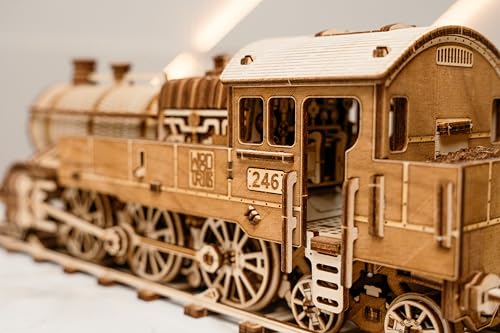 - NATURAL WOOD – Grand Traveler 246 is a fully wooden train model that requires no glue for complete assembly. Put together 410 pieces and build a stylish wooden locomotive model with a vintage look and real movement. Comes with an illustrated, step-by-step assembly guide. Dimensions: 16.14*3.34*4.33 inch (410*85*110 mm)