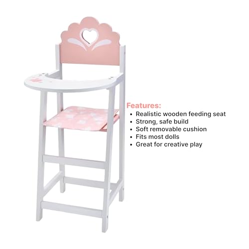 Wooden Dolls Highchair Toy Feeding Seat – Doll Feeding Highchair Set For Kids – Wooden Doll Accessory With Cushion For Imaginative Play
