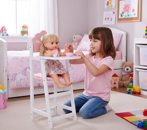 Comfortable Fabric Seat Pad – The included soft cushion features a gentle pastel print providing a comfortable seating spot for dolls while enhancing the overall look. Easy to remove for cleaning the padded seat promotes hygienic play and adds a warm charming touch to every pretend feeding session making it ideal for nurturing themed activities.