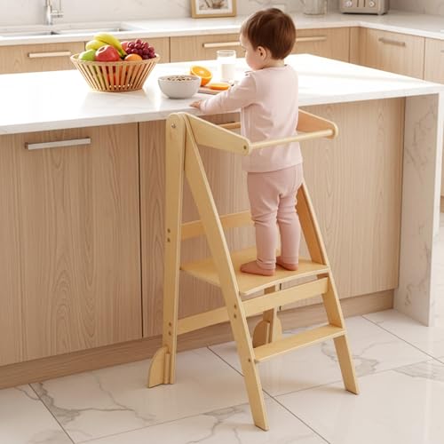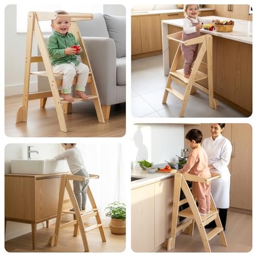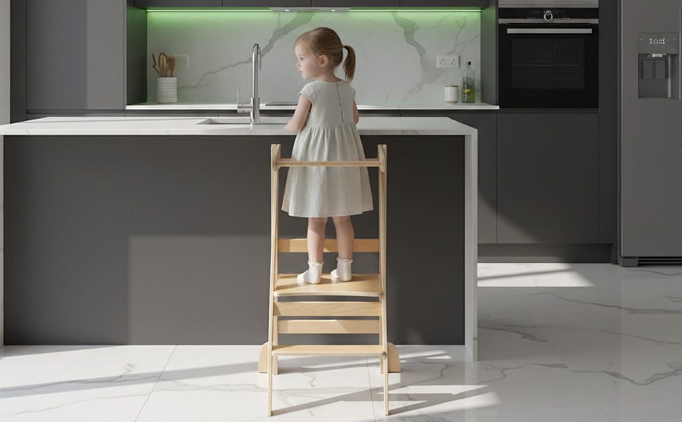 【Supports Independence & Early Learning】 Designed to align with Montessori principles, the helper tower allows toddlers to participate in cooking, washing, and hands-on family tasks. Encourages independence, boosts confidence, and nurtures essential life skills.