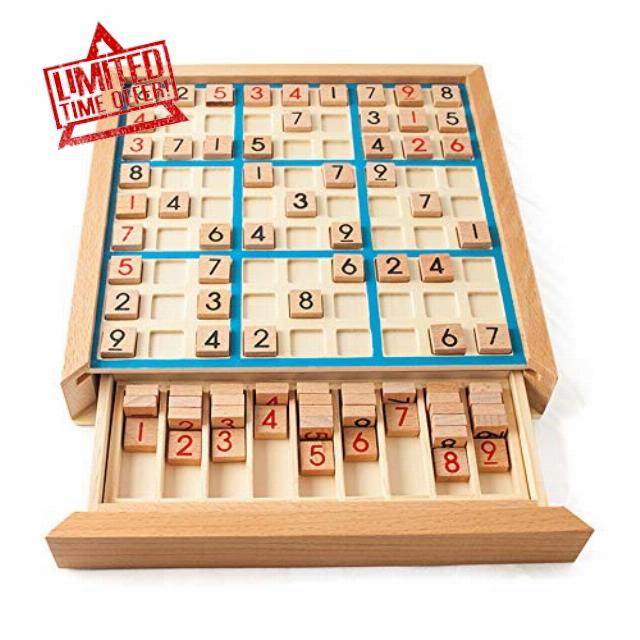 Wooden Sudoku Puzzle Board Game Set with Drawer Math Brain