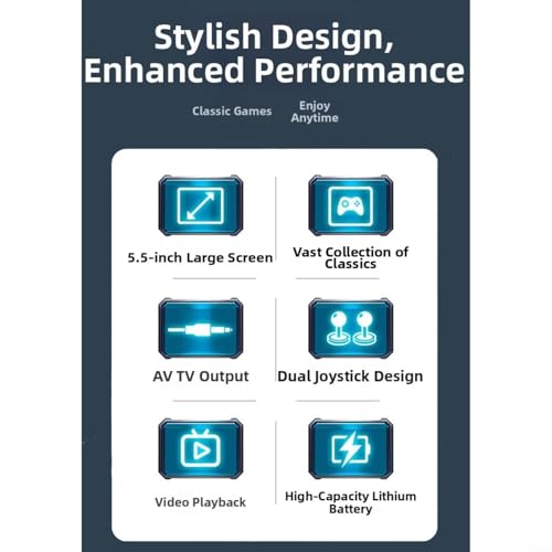 - [IMMERSIVE VISUAL EXPERIENCE]: Enjoy rich, vibrant gameplay with a 5.5-inch IPS screen in 16:9 format and 800×480 resolution, delivering details and 16 million colors for fully engaging classic video games.