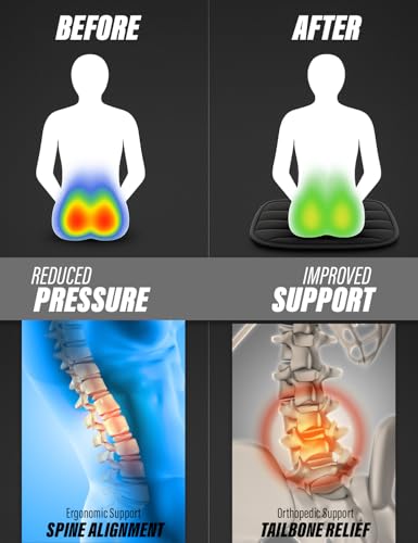- [Pain Relief & Ergonomic Design]: Designed to reduce pressure on the lower back, lumbar area, hips, and tailbone. Promotes proper spinal alignment to relieve sciatica, coccyx pain, and lower back strain – ideal for professional drivers and office workers alike.