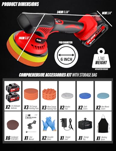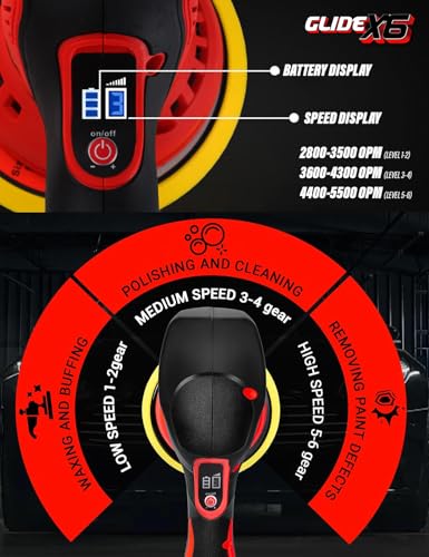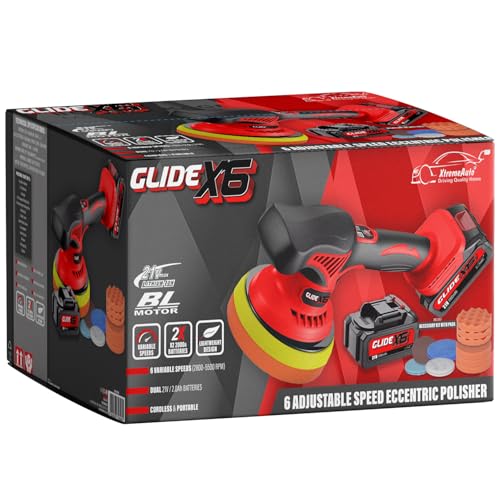 - 【NEXT-GEN BRUSHLESS MOTOR TECHNOLOGY】The Glide X6 is powered by Xtremeauto’s high-efficiency BL motor, delivering constant torque and smoother operation while running cooler and quieter than conventional carbon motors. Perfect for paint correction, polishing, or wax finishing without swirl marks.