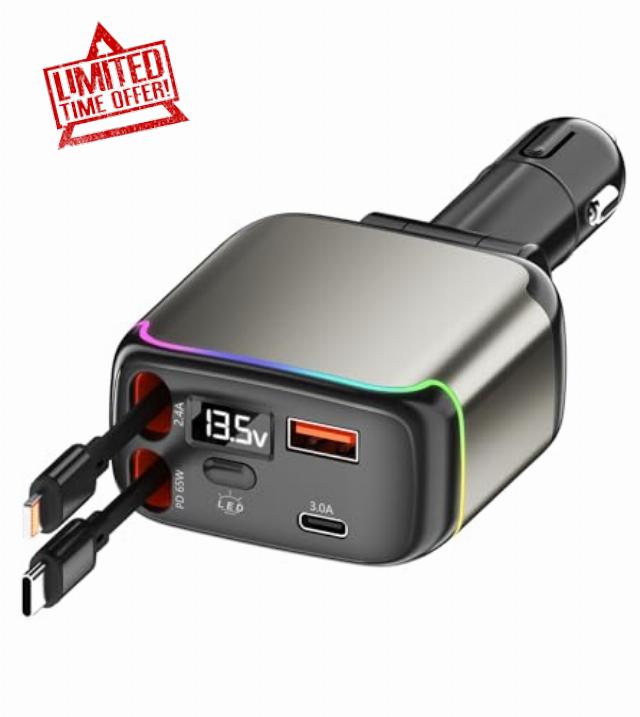 XXZU 137W Retractable Car Charger,4-in-1 USB Car Charger